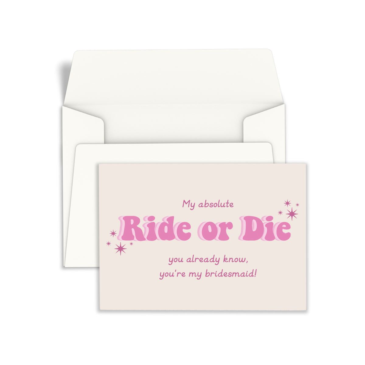 Celebrate your closest friends with our Bridesmaid notecards. These cards are perfect for asking your ride-or-die crew to stand by your side on your special day.